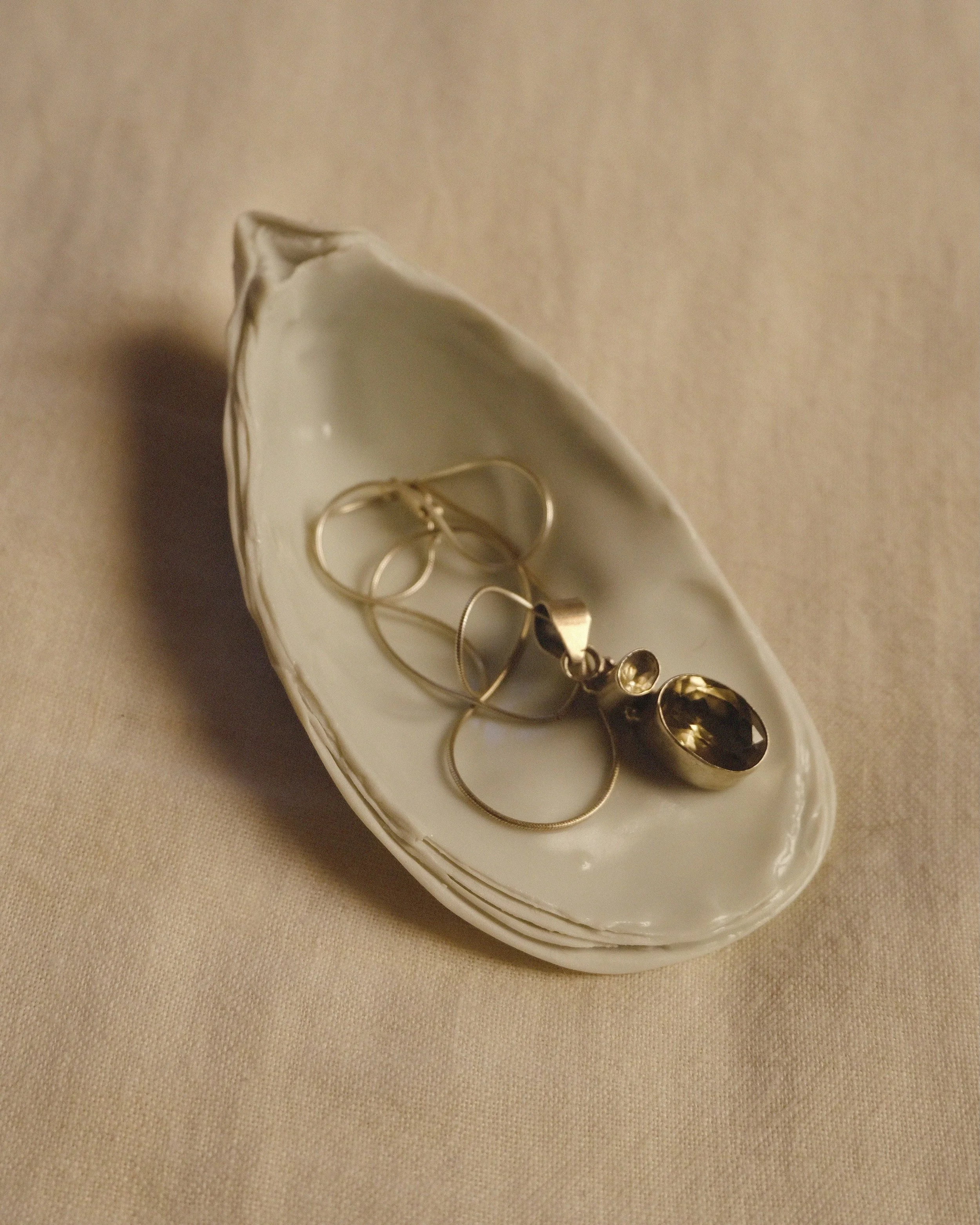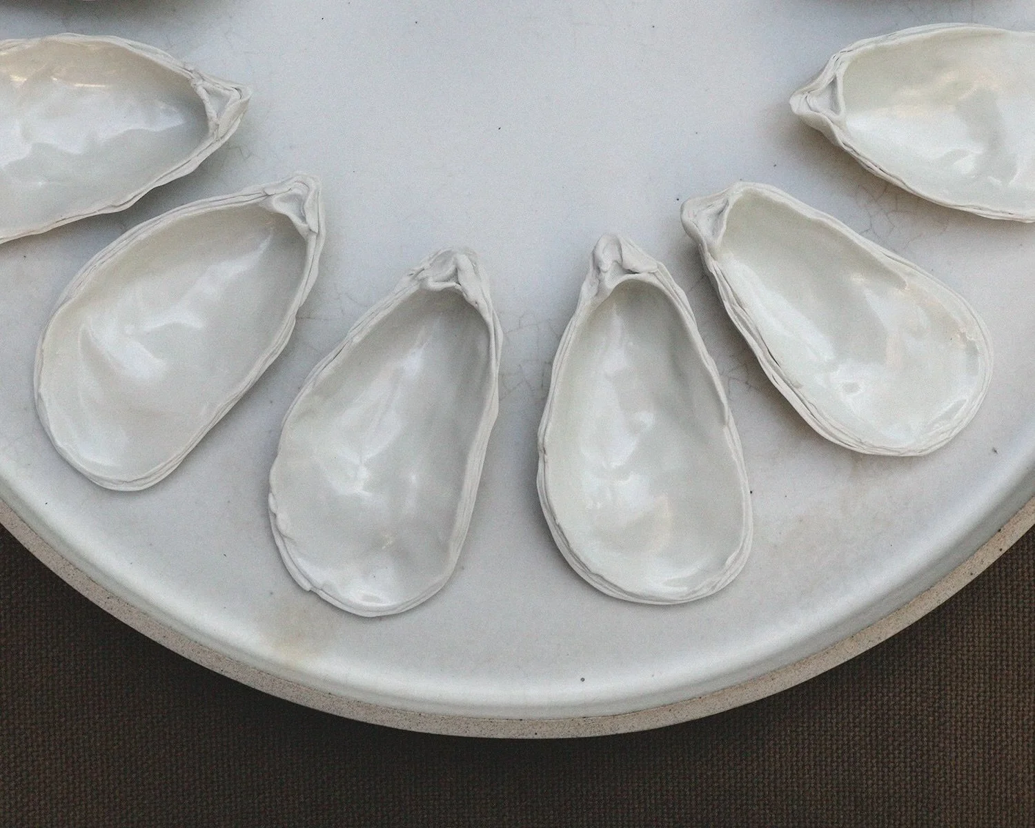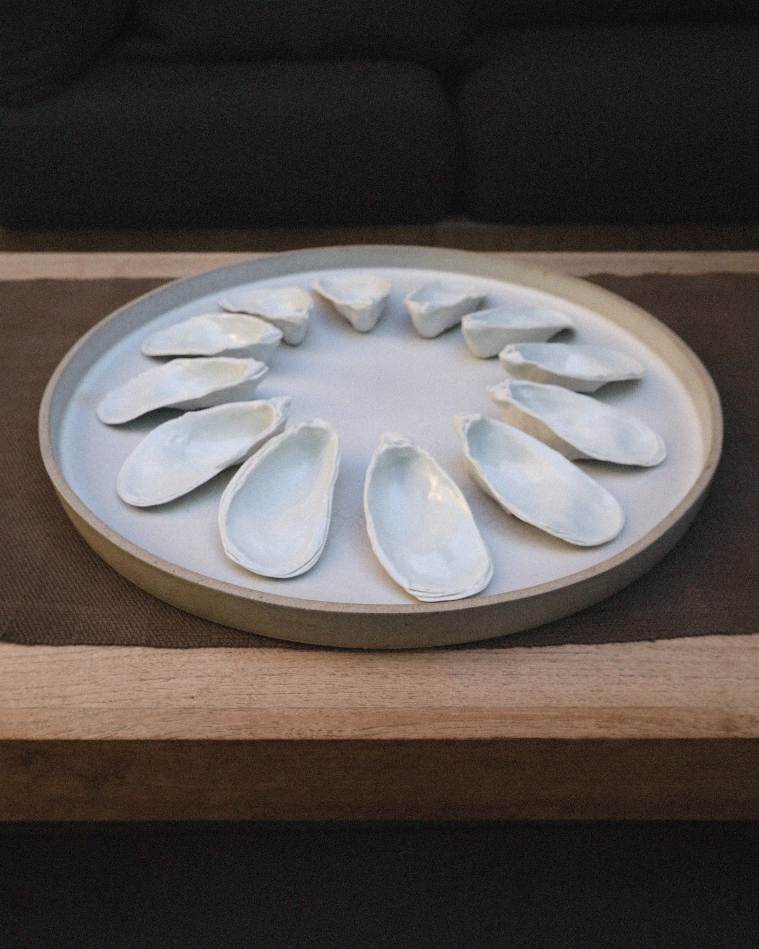 Ceramic oyster shells inspired by the California coastline. Formed, finished, and fired by hand in a Northern California studio.